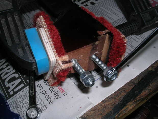 Una almeja bien acolchada se utilizó en el cuello cuando estaba apretando los pernos en acaso quería dividir.