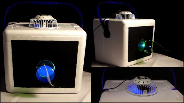 tiene una agradable luz azul brilla a través del tubo y el ventilador.