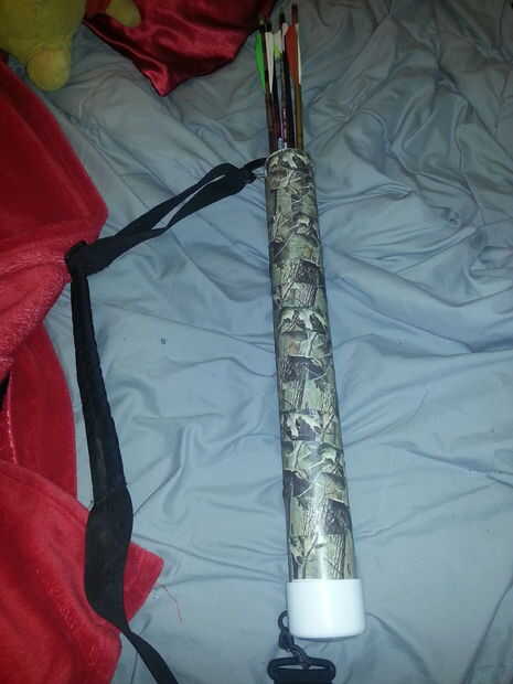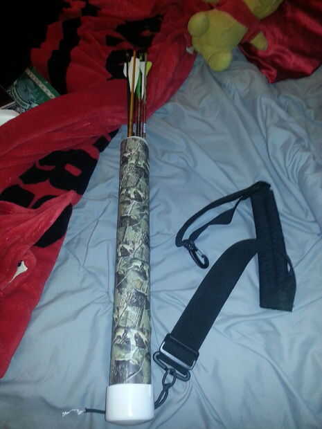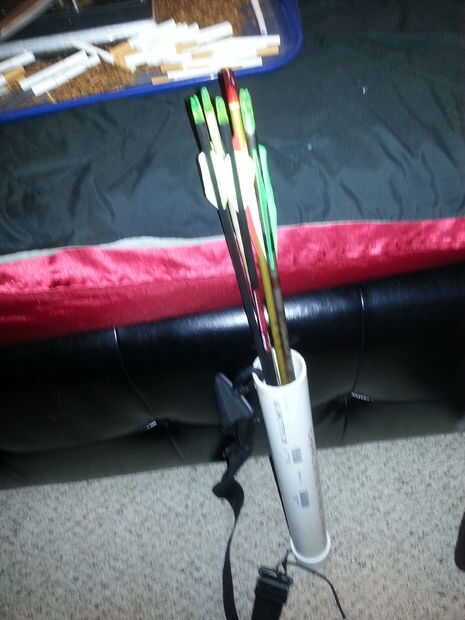 Necesitaba una manera barata y fácil de almacenar mis flechas y transporte. He encontrado usando un carcaj de PVC es de eso. Esto es muy fácil de hacer y funciona muy bien. Bastante mucho todo lo que necesita es la pipa del PVC, un tapón para el PVC y paracord para su Honda. Tenía una cinta al azar alrededor que até el paracord para la Honda.