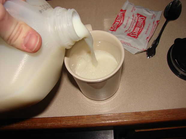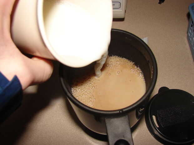 Después de que llenar la Copa más pequeña con la leche. El microondas hace aproximadamente la misma cantidad de la época.