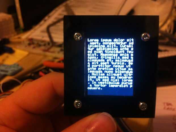 2) un pequeño pedazo de plexiglás sobre un agujero cortado en el recinto. Más barato pero el final no tan agradable, que muestra la pantalla completa a través de y cualquier corte de caja bruto.
