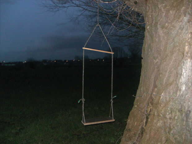 Como tarea para la escuela que tuvimos que hacer un giro, no es sólo algo puedes colgar en tu patio y lo dejas. No, un columpio portátil usted puede tomar con usted cada vez que quiere y puede colgar en cada árbol que se verá en un parque. Otra parte
