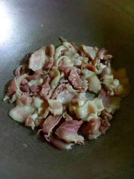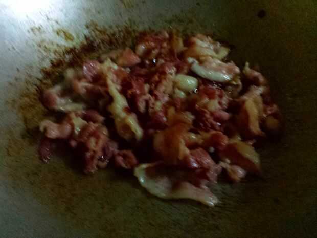 1. Cocine el tocino colocando en una bandeja. No es necesario poner aceite. Freír hasta marrón y crujiente.