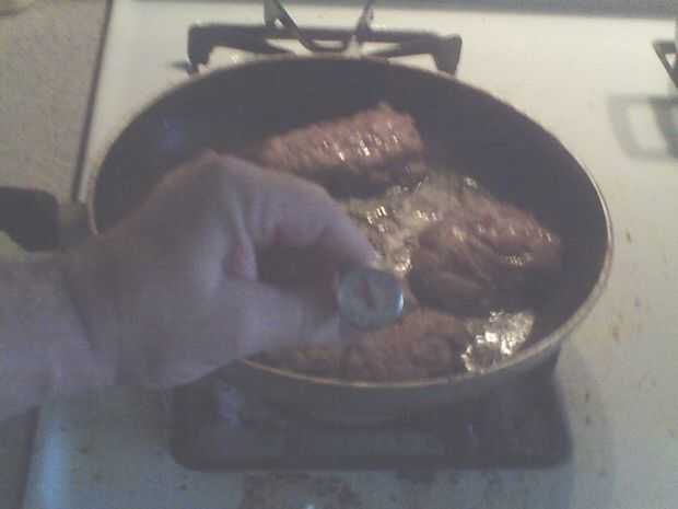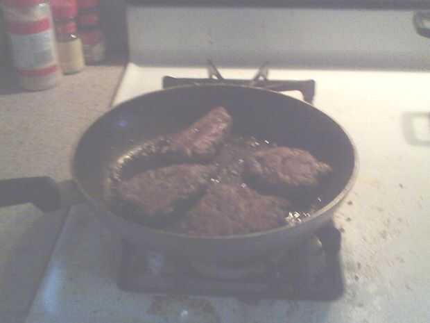 Puede dividir la carne en las hamburguesas mientras se cocinan (4 empanadas = 1/4 de libra). Usted puede Agregar especias a la carne en este momento.