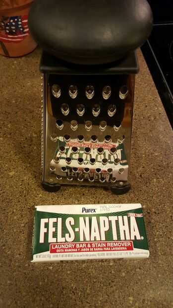 Desmenuzar o rallar el bar entero de Fels-Naptha en otro tazón.