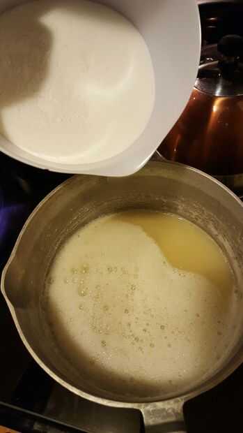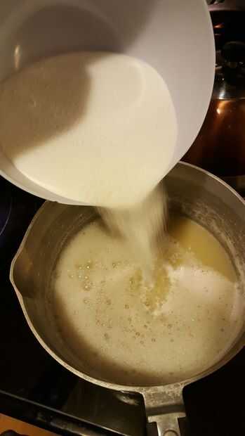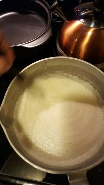 Una vez que su Fels-Naptha ha disuelto totalmente quitar del calor y revuelva en la soda de lavado mezcla bórax.