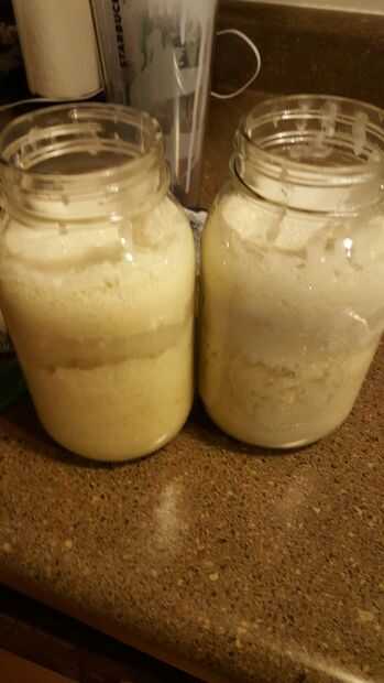 una vez que la Sosa y el bórax han disuelto totalmente verter igualmente en los tarros de masón.