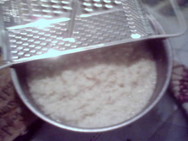 Esta gran masa de pasta que no se deben colocar en una máquina de pasta. Podría ser una variación o orzo pasta. Que acaba de tomar masa de pasta y un rallador de queso para hacer pequeñas bolas de pasta. Hervir como de costumbre.