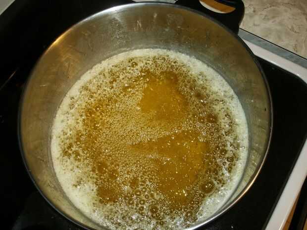 Una vez el agua haya hervido apagado, verás que la mantequilla también ha aclarado muy bien, pero continúa la burbuja. (