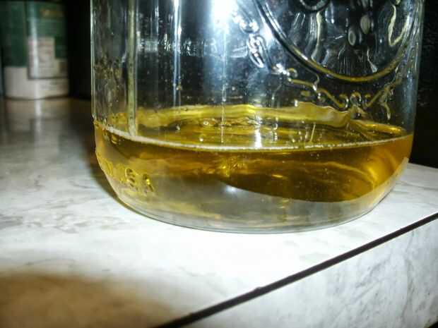 El ghee terminado debe ser sobre todo amarillo con el menor atisbo de naranja. Yo a pretender se parece más a jugo de manzana, se puede ver en la imagen que no existe un descriptor mucho más preciso de cómo debe buscar, pero que prefiere no utilizar en la descripción de alimentos. Digamos que se parece a algo que pueda necesitar para algunas entrevistas de trabajo de alto nivel. (Imagen 2) Si es más oscuro que este y pasando a los colores "marrón", a perder esa dulzura y comenzar a obtener un sabor ligeramente amargo del "quemado". Todavía es perfectamente comestible aunque.