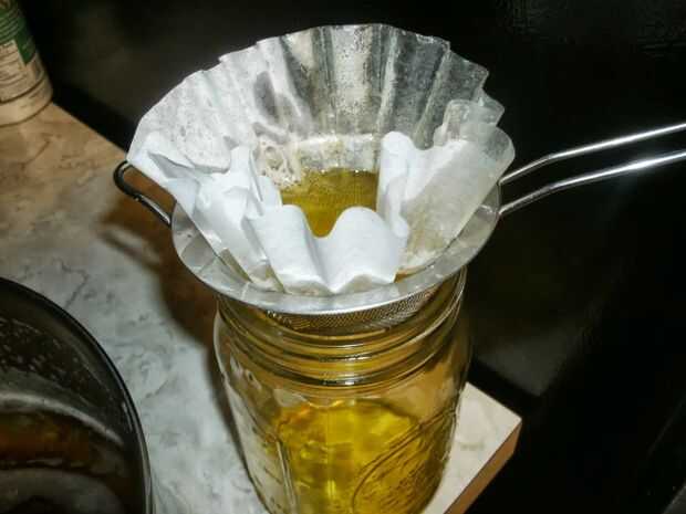 2 cuartos de galón de ghee, probablemente vas a través de filtros de café media docena, tener que sustituirlos cada vez que los azúcares obstruyen los poros y el proceso de filtrado a un alto. (En sobre $8 por cada 1.000, no trato de estimar los costos aquí...) Por esta razón, recomiendo hacer lotes pequeños, no más de 2 completos cuartos de galón (aproximadamente 20 palillos de la mantequilla) en un momento. De esta manera el ghee no refrescarse antes de que usted puede conseguir todo filtrado. (Aunque supongo que si tienes suficiente tamices, usted podría estar filtrando múltiples frascos a la vez.)