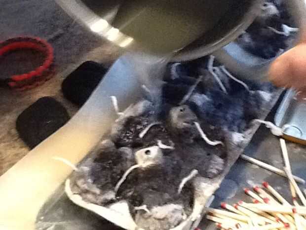 Vierta la cera sobre el cajón, asegúrese de obtener una buena cantidad en cada vaso.