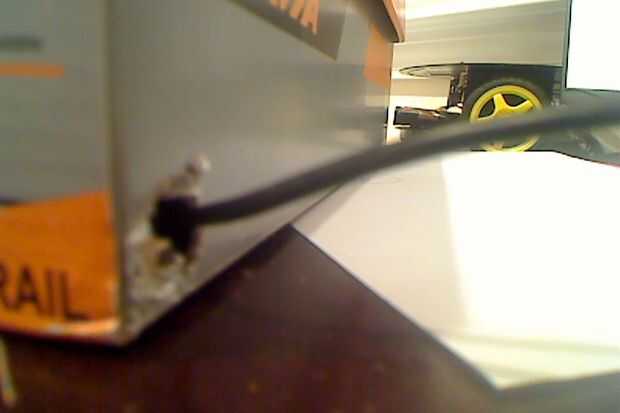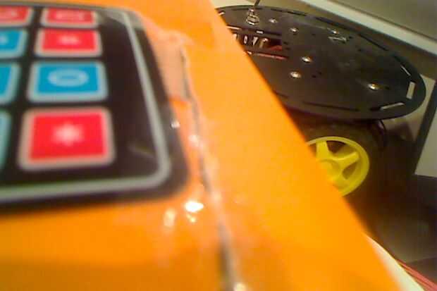 Usted tendrá que hacer tres cortes en su caja de cartón, se puede utilizar cualquier cosa pero he utilizado un cuchillo de doble hoja batman por alguna razón. Hacer uno para el cable de alimentación a menos que usted planea usar un 5V para la energía. Haría que esta corte fuera de vista del cliente potencial para mejor presentación. Los dos siguientes cortes estará en la parte superior. Convierten en uno de los cables se encenderá la pantalla lcd y hacer uno para el teclado de 4 x 4 caber a través. Oh sí, uno más corte que puede no ser necesario en algunos casos. Mi tubo de cartón para la pantalla lcd era demasiado larga así que la corte, usted puede necesitar hacer eso también.
