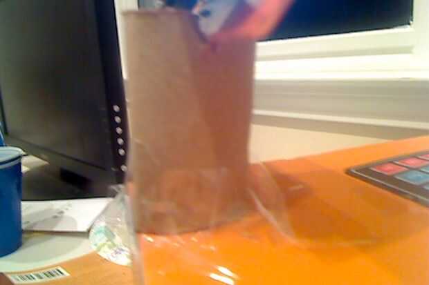 Querrá cinta dos cosas, en primer lugar, cinta hacia abajo el tubo de cartón sobre el agujero que se utilizará para la pantalla lcd de alimentación los cables de más adelante. Ahora puede cinta abajo el teclado, pero lo haría, después de que arduino está en su lugar.