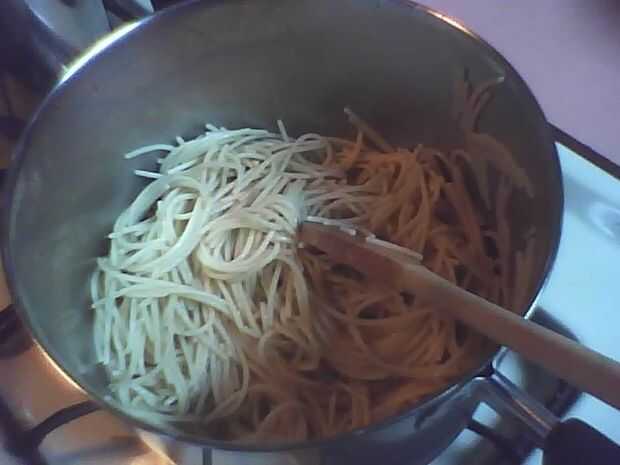 5. dejar cocinar hasta que los fideos pueden onda como una serpiente