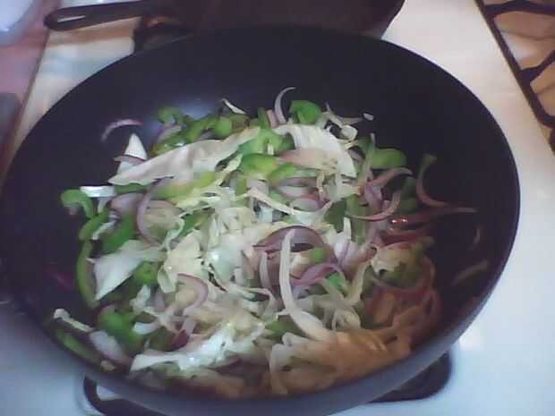 Añadir las verduras picadas (las verduras que utilicé era cebolla, pimientos, repollo, zanahorias y apio).