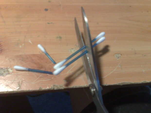 Primero: tomar el algodón y la selección de dientes y cortarlos por la mitad.
