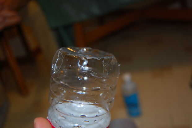 Corte algunos pequeños agujeros en la parte inferior del interior contenedor. Esto permitirá que el alcohol conseguir enfriado por el hielo seco manteniendo el grito de hielo de sus temas de prueba. Precisión no es un problema, sólo que más pequeño que el más pequeño pedazo de hielo seco.