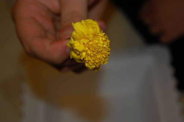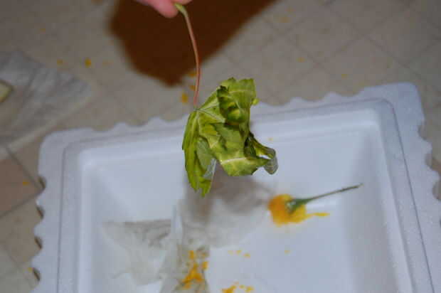 Flores probablemente dan el resultado más dramático. Caer uno en tallo arriba. Dejar reposar unos minutos. más siempre equivale a mejor. Le dan un golpe en algo, cualquier cosa realmente, después de dejar el alcohol escurr un poco. Los resultados son geniales. Probamos esta flor, encurtido (Pickles AÑICOS como el vidrio!), una hoja y un huevo.
