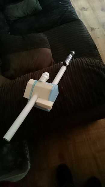 Luego sella la espuma, se rocía negro y etiquetados para arriba correctamente, me esforcé por encontrar empuñaduras para el lanzador así que terminó con los mangos de algunas armas de cinta antigua que tenía en el trabajo, realmente se veía muy bien una vez cortada en forma y pegado a los mangos (lo siento esto es vago pero como dicho que tipo de acabo de hacer esto para arriba como fue y espera lo mejor!)