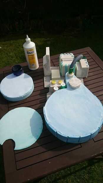 También utilicé las tapas de botella como los pequeños botones en el envase, después de pegar todo en lugar en el tablero trasero luego añadí la tubería plástica (antigua bomba de pie para una cama de aire) al frente de la manada.