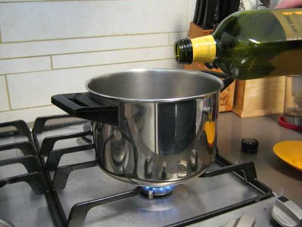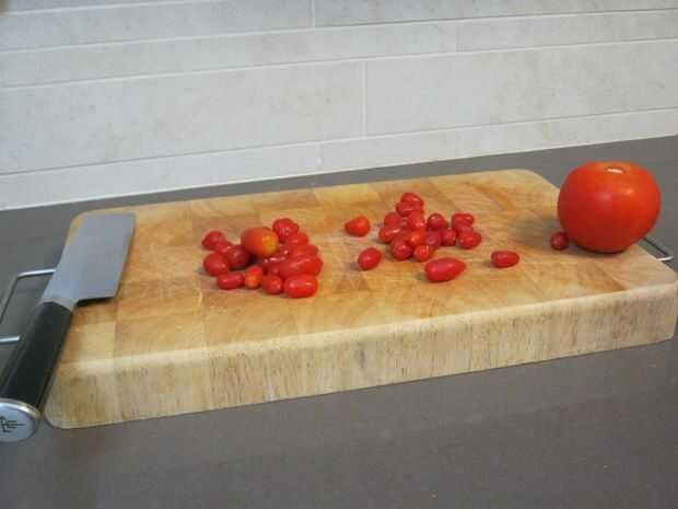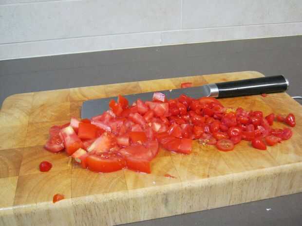 Comienza por cortar un tomate grande y un puñado de pequeños. Vierte alrededor de 1 cucharada en una olla y calentar para arriba. Cuando el aceite esté caliente, echar en una pizca de orégano.