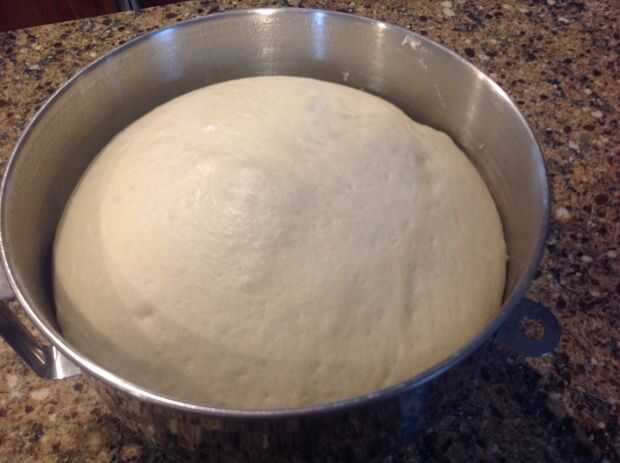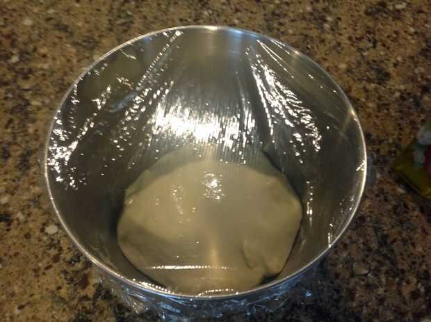 Cubrir la masa en el bol con un trozo de plástico y se deja reposar en un lugar cálido durante 50-60 minutos o hasta que la masa se ha duplicado.