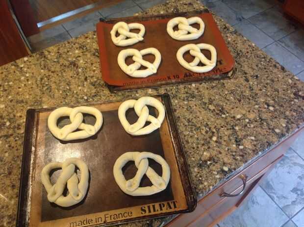 es fácil y divertido para hacer en casa estos pretzels suaves. Son bastante grandes, masticable y suave al mismo tiempo y delicioso con mostaza. Hice rosquillas saladas, pero probablemente podría hacer azúcar canela unos y sería buenos también.Paso 1