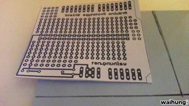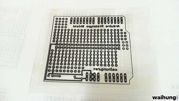 Dos de los circuitos impresos en una transparencia y superposición para obtener una imagen perfecta.
