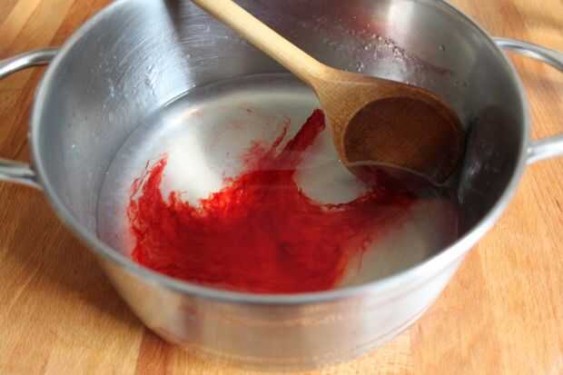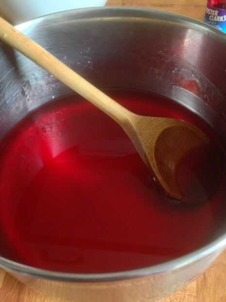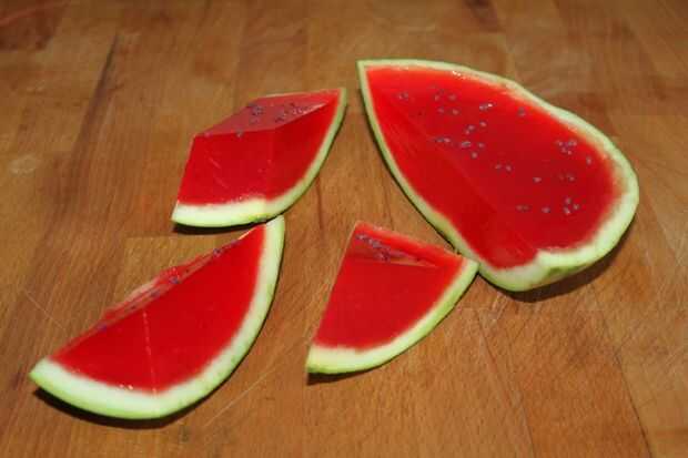 Ahora que el musgo de chaina se haya disuelto completamente, agregue azúcar al gusto, sacar del fuego Agregar colorante de alimentos rojo, mezclar bien y verter en la taza de sandía. Se fijó y se ponen duro como jalea dentro de pocos minutos. Así como verter tire unas semillas de tukmaria en la parte superior.