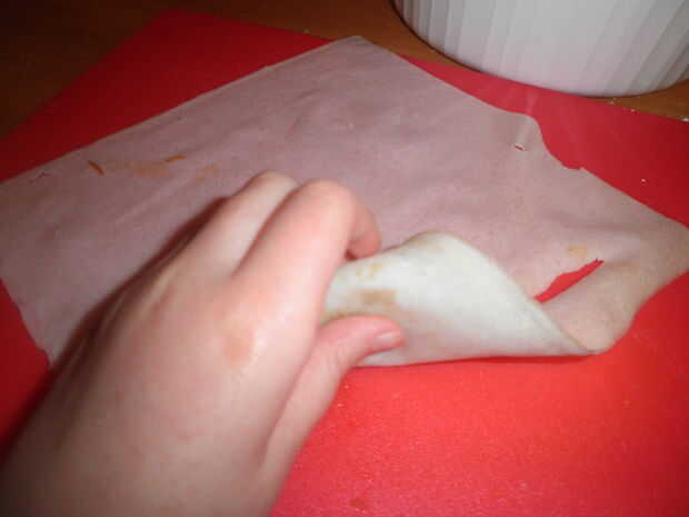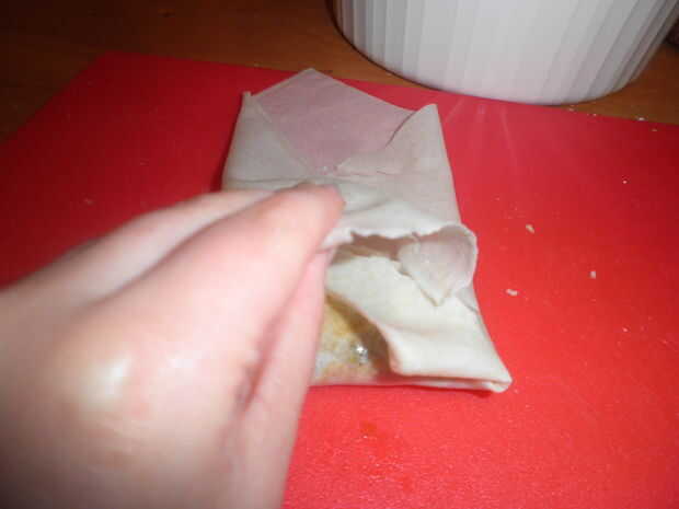 En una taza, mezcle la harina y el agua, usted necesitará esto para pegar las envolturas hacia abajo.