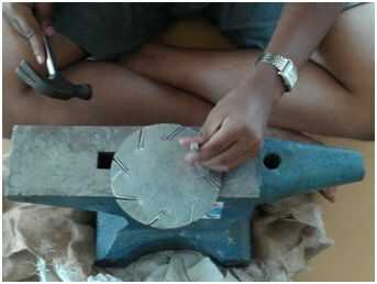 Con la máquina de corte corte la chapa a las líneas exteriores del bosquejo. Ahora dar un buen acabado superficial a la superficie de corte con el disco de pulido y acabado limpio utilizar archivos (más brillante). El producto terminado se muestra en la sección de la imagen.