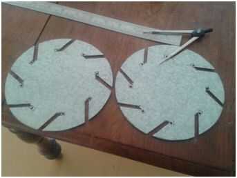 Pero en lugar de doce rodillos se puede cambiar el diseño e ir con ocho rodillos también como lo que hemos hecho. Entonces las dimensiones de la rueda se imprimen en un papel y el papel se pega en la hoja de metal para facilitar el corte.