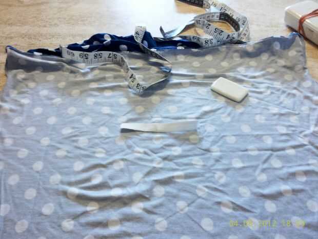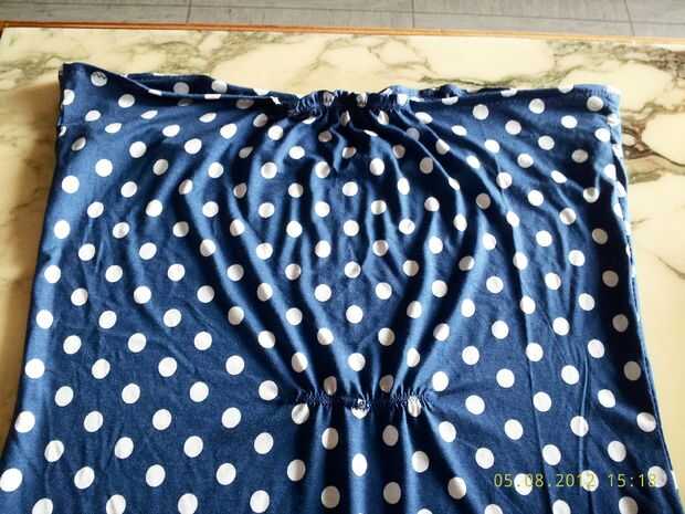 A estirar la banda sobre el pecho y uno un poco por debajo de la media de la espalda. Así que el vestido se aplica al cuerpo. He tomado piezas de 5 cm.