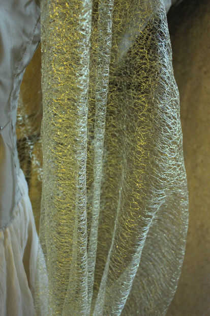 Para el abrigo, elegí un pedazo de tul de web spider, sólo compró medio metro para un par de Euros y luego dibujaron los extremos juntos y había terminado cada uno con una borla de mi decoración navideña de corte precio. Esto parecía muy delicado en la película pero puede parecer demasiado llamativa para una boda o una fiesta, sin embargo, hay algunos realmente finos tules de lentejuelas que funcionarían perfectamente con el vestido y también hice un abrigo para mi propia boda con un pedazo de terciopelo devoré. La gran cosa sobre abrigos o estolas es que necesita a tan poca tela que realmente puede conseguir a algunas telas de muy buena calidad para unos pocos dólares/libras/euros.