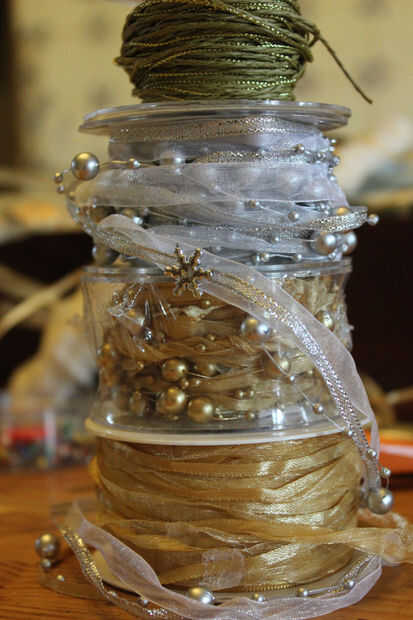 También compré algunas decoraciones de Navidad y guirnaldas en una venta final 'everything must go'. Éstos fueron hechos de cintas de muy buena calidad, plumas y borlas, que fueron marcadas en primer lugar a -70% y luego a una más -50%. Este es el tipo de cosas que terminan en tiendas de segunda mano-ahora.
