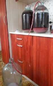 Cuando el bloqueo de agua deje de burbujear durante 1-2 días (se desinfla el guante) y el mosto tiene más brillante y formado sedimentos sueltos en la parte inferior, el vino nuevo se vierte en otro recipiente. El trato es que los hongos muertos se reúnen en la parte inferior. Si permanecen en el vino durante mucho tiempo, le darán un sabor amargo y un mal olor. 1-2 días antes de retirar el vino del sedimento el recipiente de fermentación se pone por encima del suelo (1.5-2 ft/50-60 cm). Usted puede ponerlo en un banco, una silla o cualquier otra cosa. Cuando hay sedimento en el fondo otra vez, el vino se debe verter en otro recipiente (seco y limpio) a través de un sifón, un tubo suave transparente 0.25-0.4 pulgadas / 0.7-1 cm de diámetro y 3.2-5 pies/1-1.5 metros de largo. No deben recibir el extremo del tubo pulgadas menos de 0.8-1/2-3 centímetros del sedimento.