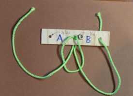 Corte cerca de 2,5 pies de cable han decidido utilizar. Doble el cable por la mitad y meter por el agujero central. Tire de ella a través de un par de pulgadas y luego los extremos de la cuerda a través del lazo. Ahora puede tomar ambos extremos de la cuerda y empujar a través de la parte delantera de los agujeros de 1/4 parte y entonces atar en un nudo. No te olvides de poner la tuerca en un extremo antes de atar apagado. Ahora cortar el cable sobrante de los extremos.