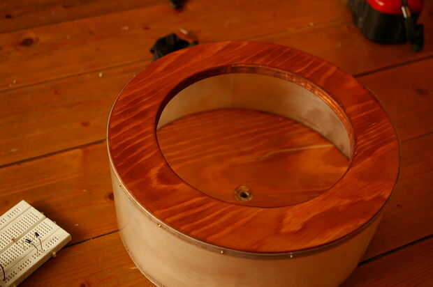 Luego, manchado con una tinta para madera caoba tan el hacer el pino se ven bien.