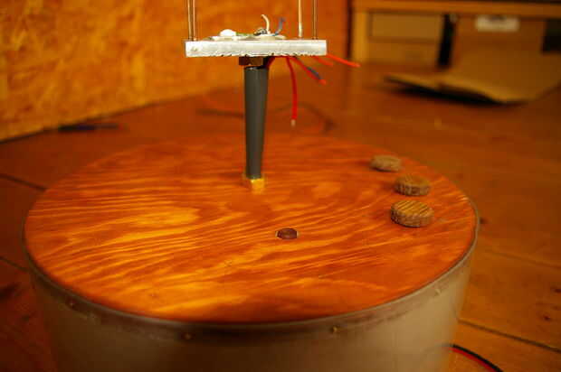 He hecho el botón de una pieza de caoba y las perillas de astillas de madera de nogal.