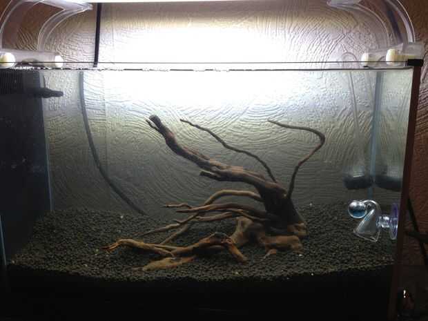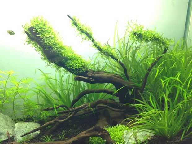 Así que ahora todo está asegurado y recortado hasta puede instalar su ornamento casero en la pecera. Una vez que la mina estaba en el lugar he plantado el depósito. Os adjunto también pequeñas plantas a la madera para crear un look super natural.