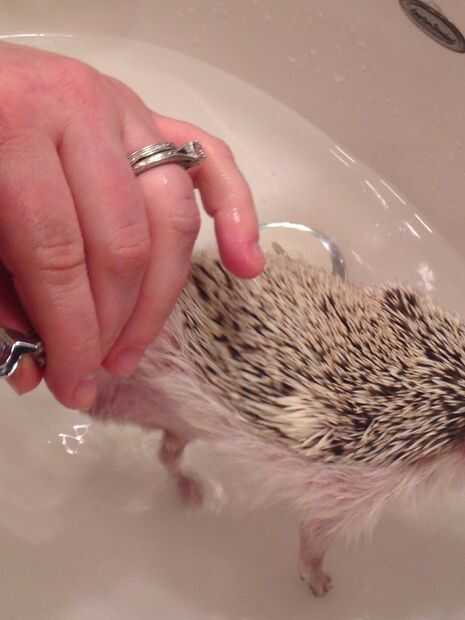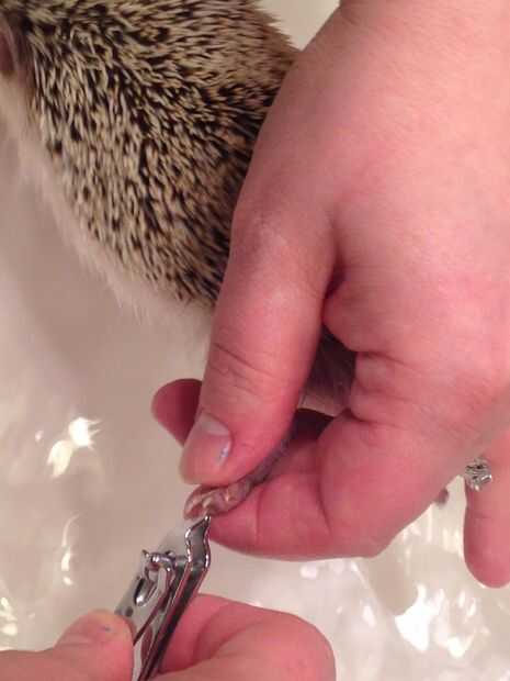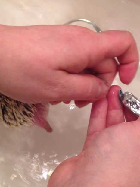 Después de un minuto o tan de remojo, normalmente empiezo con los clavos traseros ya que son la forma más fácil. Ello mientras Cas está todavía en el agua porque él (y la mayoría hedgehogs) son menos propensos a prestar atención a mí (por lo tanto reduciendo el riesgo de las picaduras) y más investigación es probable que su bañera.