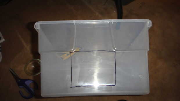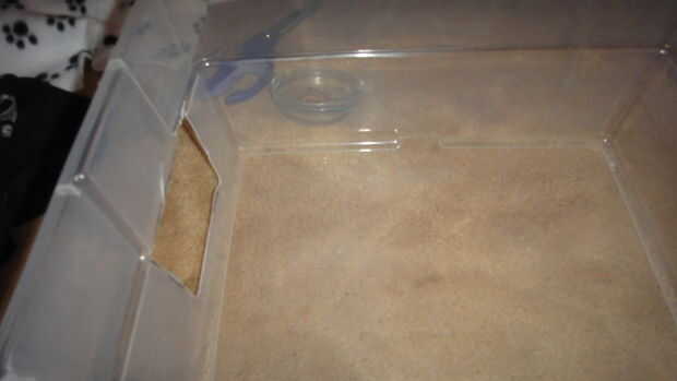 Corte un orificio de tamaño adecuado en el contenedor (lo suficientemente grande para hedgie entrar y salir fácilmente). Como siempre precavido!