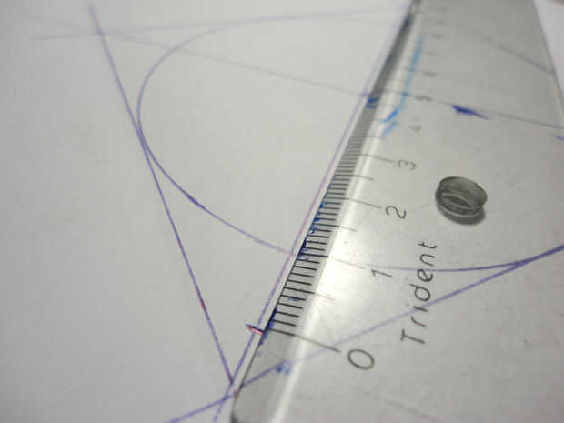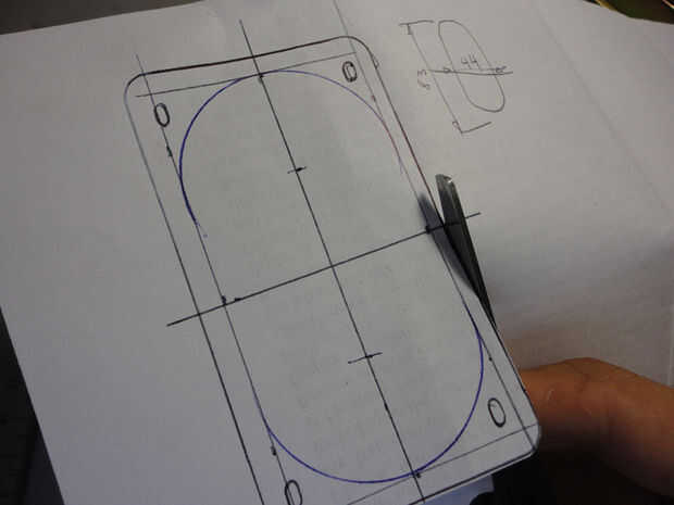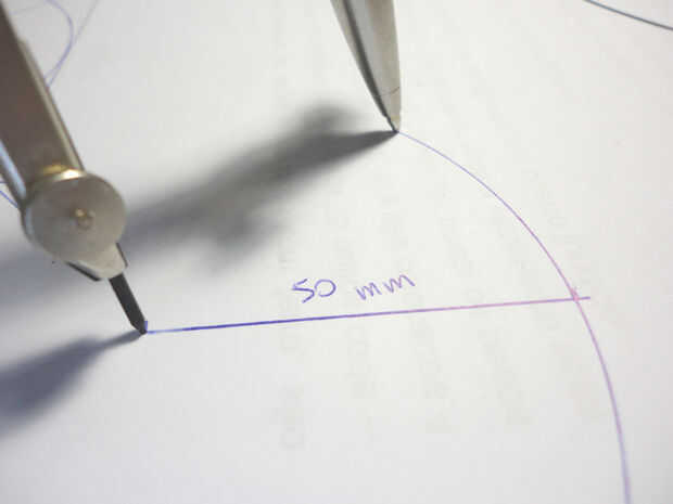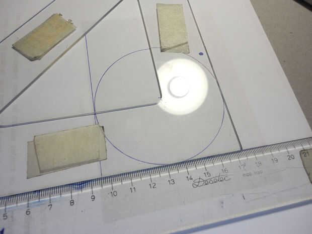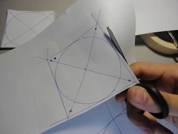 -Corte de la plantilla (puede ser mejor para dibujar un cuadrado tangente al círculo antes de cortar)
