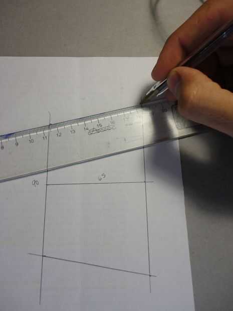 -Trazar una vertical y una línea horizontal a través de la marca pequeña a la izquierda por la brújula