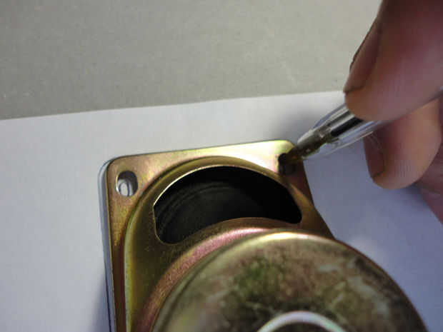 -Marca el punto medio de los lados del marco de altavoz