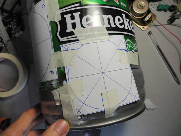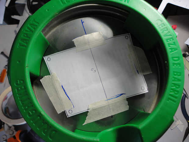 Que se establecieron, marque la línea central de la Barrileteada y la altura donde se centrarán los altavoces pequeños. Esto puede comentar, pero toma en cuenta la topografía del barril, por lo que se adapta a la pantalla del metal vamos a utilizar para proteger los altavoces.