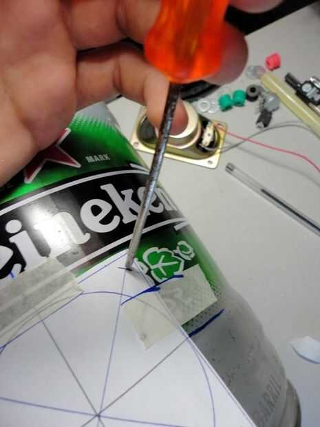 Cinta las plantillas para el barril para asegurarse de que todo encaja. Utilice los puntos de referencia se dibuja en sus plantillas para perforar el centro de los agujeros del altavoz sí mismo.