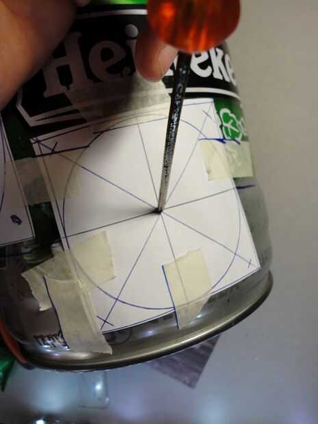 Utilice el marcador de la brújula para transcribir diámetros del orador para el barril, centrado en las punciones que hiciste anteriormente.