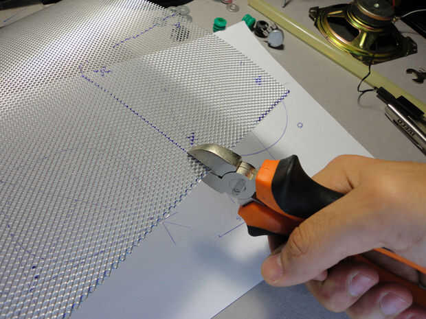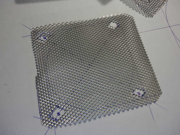 -Corte los orificios con el cortador de alambre. Si sus cortadores de alambre tiene un demasiado grande de una punta o la malla está demasiado apretada, pruebe martilleo de una cuchilla x-acto a través de la pantalla